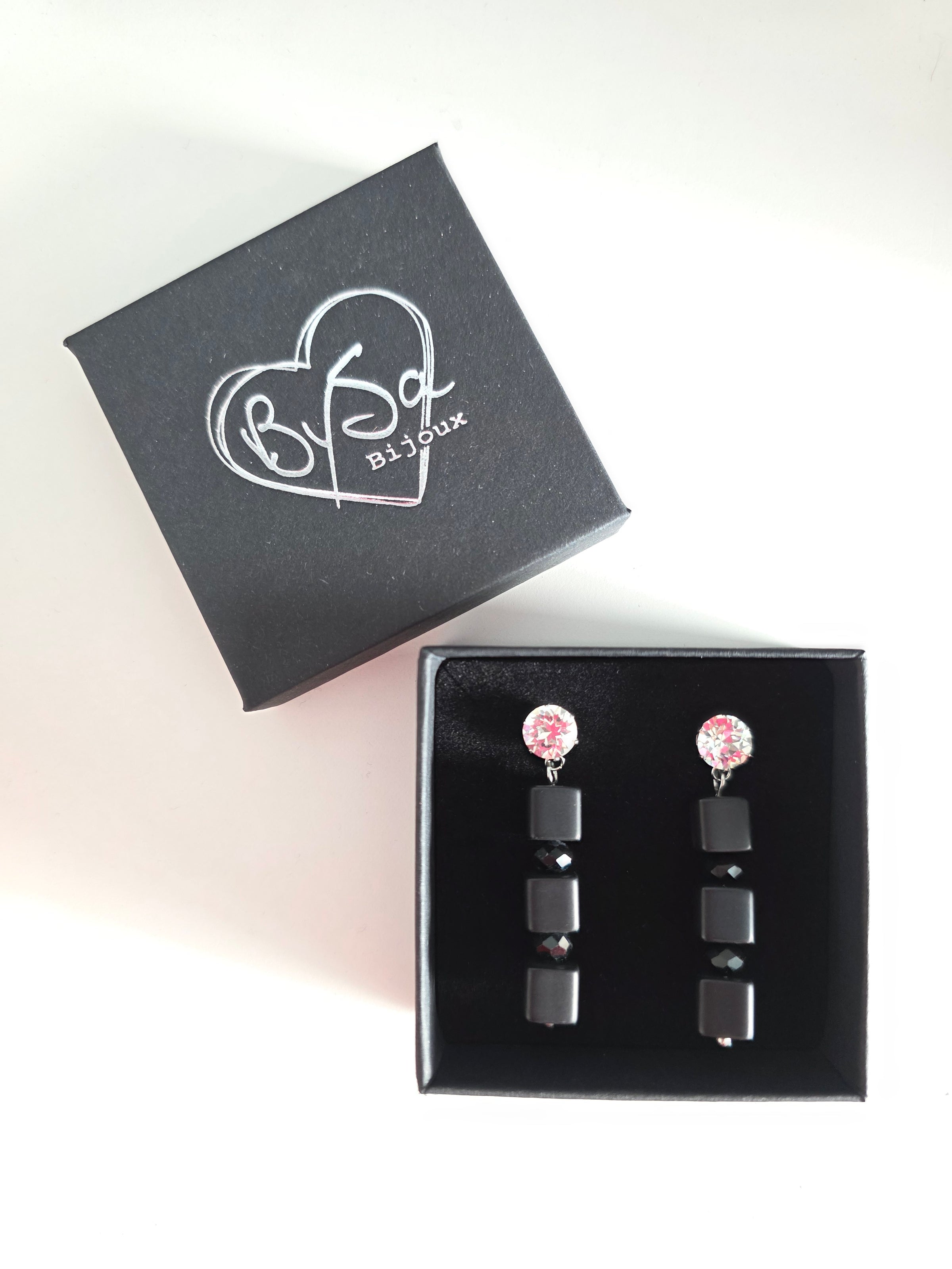 Orecchini in Resina e cristallo con chiusura in acciaio inox e strass.